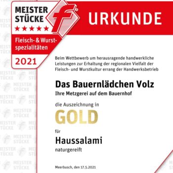 - Anfang Mai haben wir uns am Qualitätswettbewerb des Fleischerverbandes für handwerkliche Leistungen zur Erhaltung der regionalen Vielfalt der Fleisch- und Wurstkultur mit unserer naturgereiften …